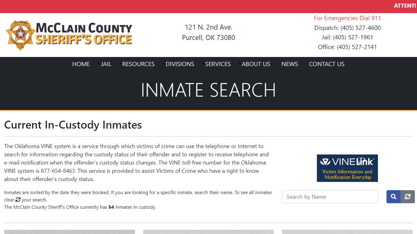 https://mcclaincountyjail.org/inmate-search/ Oklahoma Inmate Search, Jail Rosters